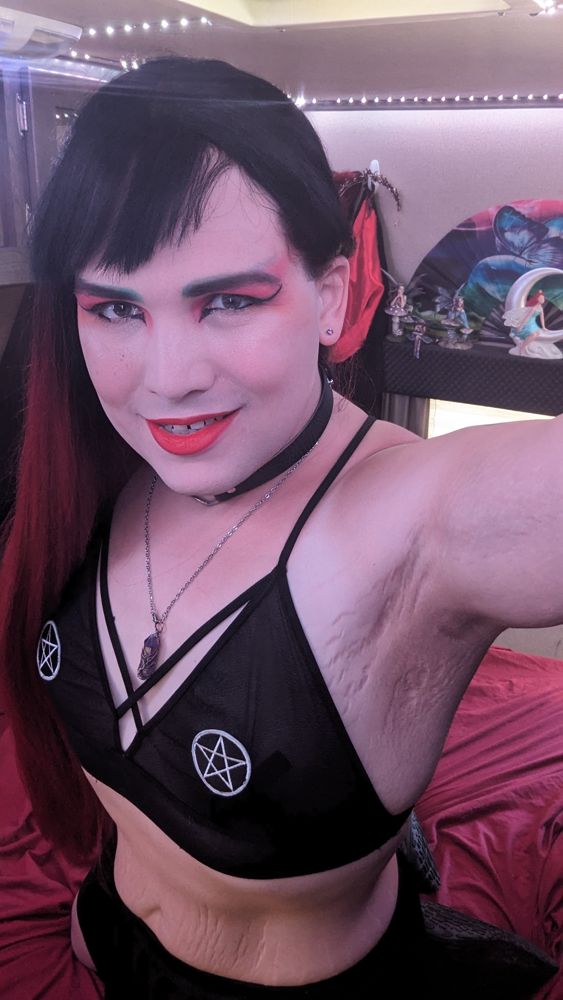 I’m a cam model and dominatrix. Not only am I one hell of a woman, I’m a trans woman unlike any other! I have lots of experience bringing out budding desires and dark fantasies in a safe and caring way. Whether you find you’re not really into it or you are addicted and just want more, I can find what makes you happy and give it to you.